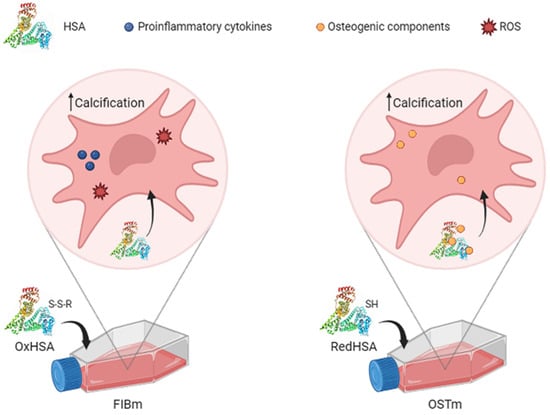 Sastre-Oliva, T.; Corbacho-Alonso, N.; Rodriguez-Sanchez, E.; Mercado-García, E.; Perales-Sanchez, I.; Hernandez-Fernandez, G.; Juarez-Alia, C.; Tejerina, T.; López-Almodóvar, L.F.; Padial, L.R.; et al. Albumin Redox Modifications Promote Cell Calcification Reflecting the Impact of Oxidative Status on Aortic Valve Disease and Atherosclerosis. Antioxidants 2024, 13, 108. https://doi.org/10.3390/antiox13010108