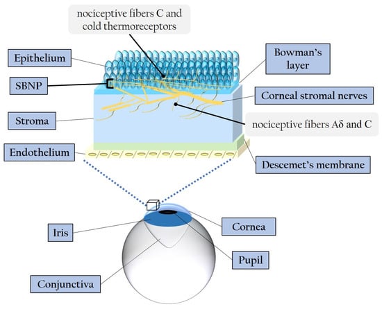 - Al-Aqaba, M.A.; Dhillon, V.K.; Mohammed, I.; Said, D.G.; Dua, H.S. Corneal nerves in health and disease. Prog. Retin. Eye Res. 2019, 73, 100762. [Google Scholar] [CrossRef] [PubMed]