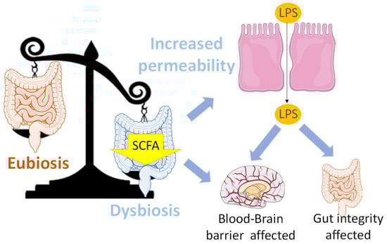 Despite the high degree of redundancy found in gut microbial gene expression, an imbalance in this community can lead to health impairment. This alteration in microbiota composition is known as “dysbiosis” and has been linked to a variety of diseases, such as inflammatory bowel disease (IBD), metabolic disorders (e.g., obesity or diabetes), allergies, cancer and neurologic conditions, such as autism spectrum disorders (reviewed in []). Given the importance of maintaining the gut microbiota composition and preventing/reverting dysbiosis, the factors involved in these processes have recently been gaining attention.
