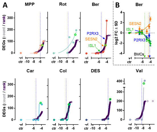 - Phillips, J.R.; Svoboda, D.L.; Tandon, A.; Patel, S.; Sedykh, A.; Mav, D.; Kuo, B.; Yauk, C.L.; Yang, L.; Thomas, R.S.; et al. BMDExpress 2: Enhanced transcriptomic dose-response analysis workflow. Bioinformatics 2019, 35, 1780–1782. [Google Scholar] [CrossRef]