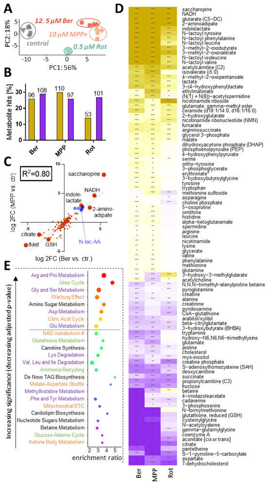 Suciu, I.; Delp, J.; Gutbier, S.; Suess, J.; Henschke, L.; Celardo, I.; Mayer, T.U.; Amelio, I.; Leist, M. Definition of the Neurotoxicity-Associated Metabolic Signature Triggered by Berberine and Other Respiratory Chain Inhibitors. Antioxidants 2024, 13, 49. https://doi.org/10.3390/antiox13010049