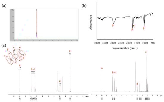 High-performance liquid chromatography (HPLC, Agilent 1100, Santa Clara, CA, USA) equipped with a Zoxbax-C18 column was employed to determine the chemical composition of the CE. The mobile phase consisted of a mixture of sodium sulfate, acetonitrile, and methanol (90:190:20, v/v), and the flow rate was set at 1 mL/min. Detection was performed at 326 nm using an ultraviolet–visible detector. The characteristic peaks of CE were further analyzed through FTIR spectroscopy with potassium bromide disks (Jasco 4700, Tokyo, Japan), and the NMR spectra were recorded using a Bruker AM-400 spectrometer (Bruker Avance III HD 600 MHz, Karlsruhe, Germany).