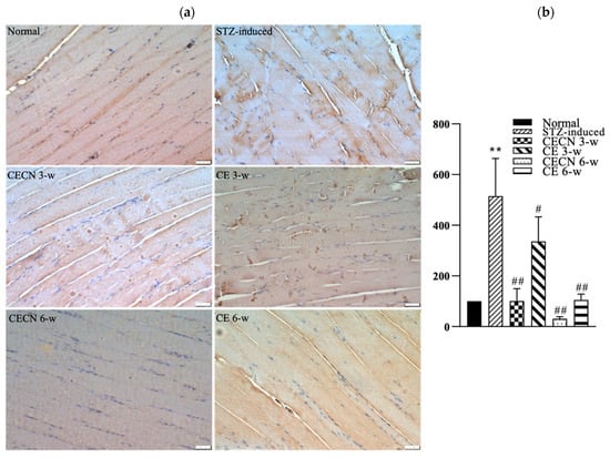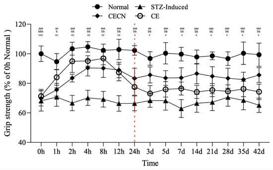 Figure 4c,d). Furthermore, treatment with CE and CECNs decreased the IL-6 level to ameliorate skeletal muscle atrophy and, significantly improved the grip strength in STZ-induced diabetic rats (