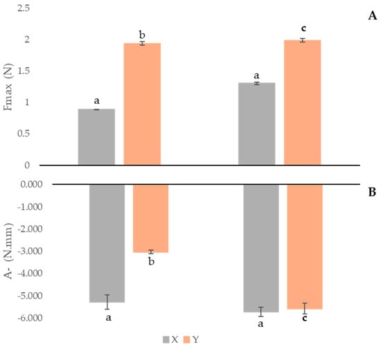 Table 1 summarizes the composition of the oil-in-water (o/w) cream formulation. Briefly, the oil phase ingredients were heated using a water bath (Nahita, Auxilab, Navarra, Spain) at 80–90 °C. The ingredients of the aqueous phase were mixed and heated at the same temperature as the oil phase. Once both phases reached the same temperature, the aqueous phase was slowly added to the oil phase with continuous stirring. The mixture was then stirred until cooled to room temperature. To improve the formulation’s consistency, Carbopol® 940 was added, and triethanolamine was used to adjust the pH. After optimizing the formulation, 10% of A. unedo extract was incorporated. Both formulations, with (Y) and without (X) extract, were stored at 25 °C and evaluated for accelerated stability, pH, color, texture, and rheology.