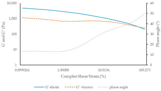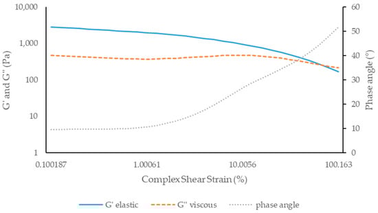 To determine the linear viscoelastic region, after preparation the following conditions were considered: a shear strain between 0.1 and 100 s−1, a frequency of 1 Hz, and 10 samples per decade.