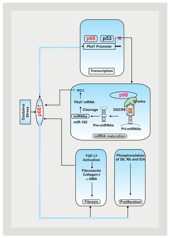 - Zhang, L.; Li, L.X.; Zhou, J.X.; Harris, P.C.; Calvet, J.P.; Li, X. RNA helicase p68 inhibits the transcription and post-transcription of Pkd1 in ADPKD. Theranostics 2020, 10, 8281–8297. [Google Scholar] [CrossRef] [PubMed]