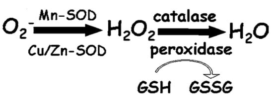 - Wang, Y.; Branicky, R.; Noë, A.; Hekimi, S. Superoxide Dismutases: Dual Roles in Controlling ROS Damage and Regulating ROS Signaling. J. Cell Biol. 2018, 217, 1915–1928. [Google Scholar] [CrossRef] [PubMed]
