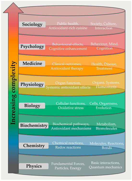 Our brief discussion on reductionism, semantics, language games, and the construction of knowledge has led us on a bumpy ride through difficult philosophical terrain. Eventually, it has shown that talking about “antioxidants” is controversial, predominantly because the expression is used differently and often imprecisely by different scientists active in different disciplines and at different layers of complexity. Taking the expression “antioxidants” from chemistry to more complex systems such as cells, tissues, and, eventually, humans automatically charge it with connotations and associations that are not really warranted. Similarly, the causality of underlying mechanisms must be determined “top-down” and not “bottom-up”, although “bottom-up” is perhaps easier and more desirable and is, therefore, often the reason behind unfounded “health claims” made for antioxidants from within the layers of chemistry, biology, and cell and tissue biology.