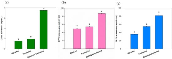 | Optimized kombucha | 12.27 | 10.07 | 28.4 | 80.16 | 81.24 |