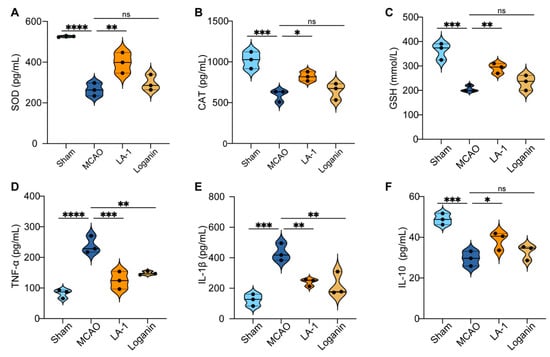 3.7. LA-1 Alleviates Oxidative Stress Damage and Inflammation Induced by Cerebral Ischemia–Reperfusion Injury