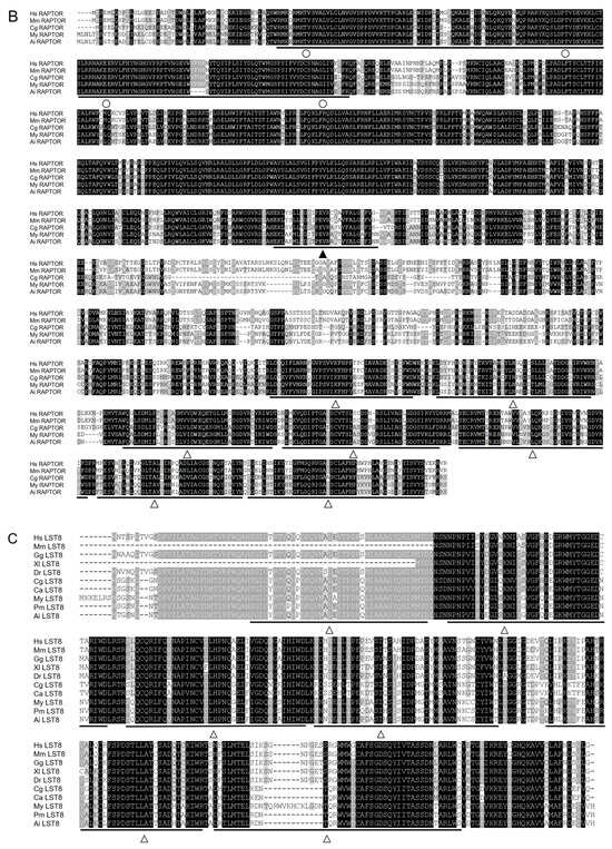 - Ginalski, K.; Zhang, H.; Grishin, N.V. Raptor protein contains a caspase-like domain. Trends Biochem. Sci. 2004, 29, 522–524. [Google Scholar] [CrossRef]