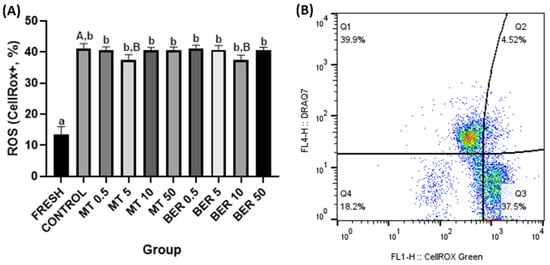 3.3. Effects of MT and BER on the ROS Generation of Frozen-Thawed Sperm