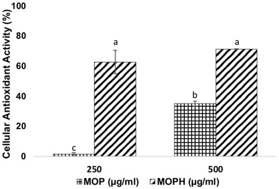 3.3. Determination of In Vitro Antioxidant Activity of Moringa oleifera Leaf Protein and Protein Hydrolysate by Cellular Antioxidant Activity