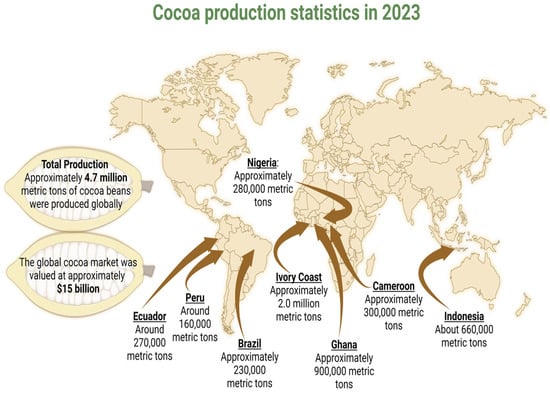 - Badrie, N.; Bekele, F.; Sikora, E.; Sikora, M. Cocoa agronomy, quality, nutritional, and health aspects. Crit. Rev. Food Sci. Nutr. 2015, 55, 620–659. [Google Scholar] [CrossRef] [PubMed]