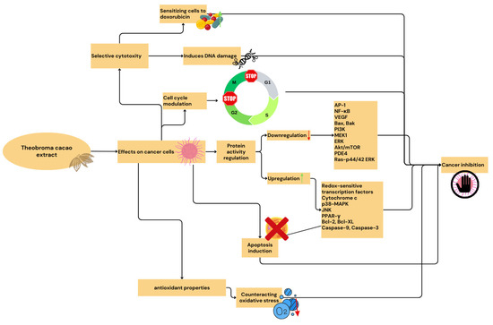Sitarek, P.; Merecz-Sadowska, A.; Sikora, J.; Osicka, W.; Śpiewak, I.; Picot, L.; Kowalczyk, T. Exploring the Therapeutic Potential of Theobroma cacao L.: Insights from In Vitro, In Vivo, and Nanoparticle Studies on Anti-Inflammatory and Anticancer Effects. Antioxidants 2024, 13, 1376. https://doi.org/10.3390/antiox13111376