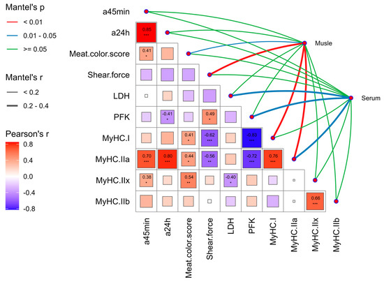 3.6. Correlation Analysis Between Antioxidant Capacity and Meat Quality, Glycolysis and Muscle Fiber Type in Finishing Pigs Based on Mantel-Test
