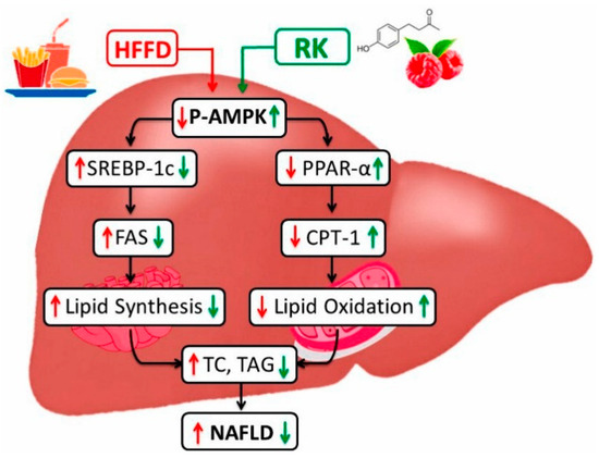 - Askar, M.E.; Ali, S.I.; Younis, N.N.; Shaheen, M.A.; Zaher, M.E. Raspberry ketone ameliorates nonalcoholic fatty liver disease in rats by activating the AMPK pathway. Eur. J. Pharmcol. 2023, 957, 176001. [Google Scholar] [CrossRef] [PubMed]