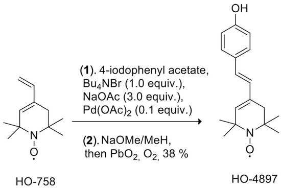 The overall synthesis of (E)-4-(4-hydroxystyryl)-2,2,6,6-tetramethyl-1,2,3,6-tetrahydropyrine-1-yloxyl radical (HO-4897) is shown in Scheme 1.