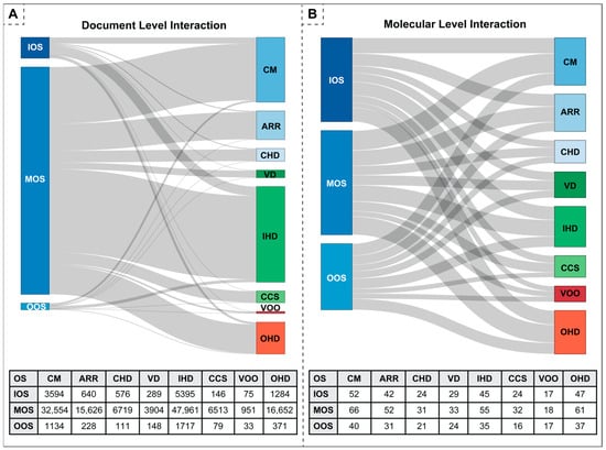 | CVD Category | Abbreviation | Major Root Nodes (MeSH) | No. of CVD Publications Collected | No. of OS-Related Publications Within CVD |