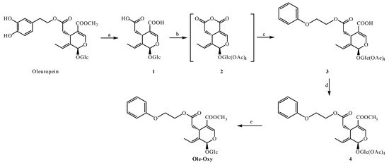 2.2.2. Synthesis of Methyl (4S,5E,6S)-4-[2-[2-(Phenoxy)ethoxy]-2-oxoethyl]-5-ethylidene-6-[(2S,3R,4S,5S,6R)-3,4,5-trihydroxy-6-(hydroxymethyl)oxan-2-yl]oxy-4H-pyran-3-carboxylate (Ole-Oxy)