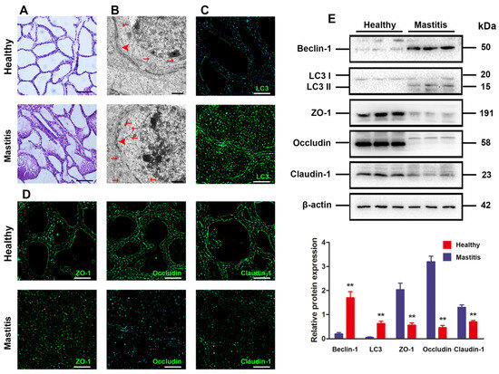 3.1. Excessive Autophagy and BMB Disruption in Mammary Glands with Subclinical Bovine Mastitis