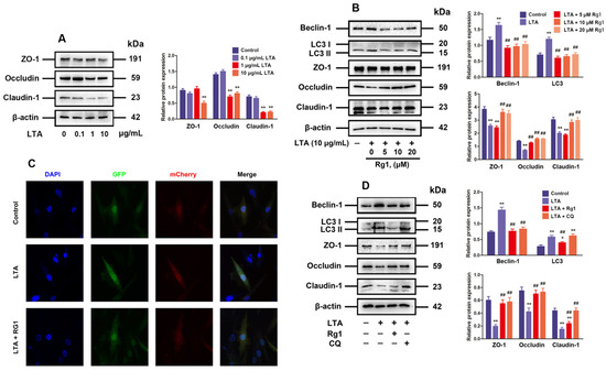 3.2. Rg1 Inhibited LTA-Induced Excessive Autophagy to Alleviate TJ Dysfunction