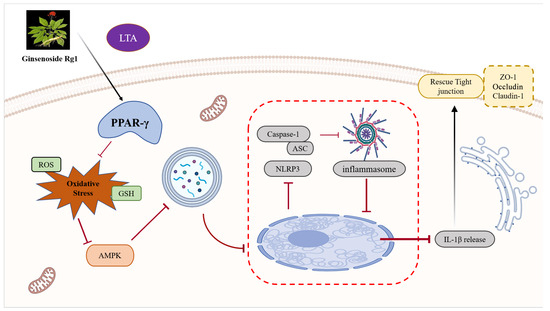 3.5. Rg1 Inhibited LTA-Induced Excessive Autophagy and Recover TJ Dysfunction by Virtue of Oxidative Stress Suppression Plus PPARγ Upregulation