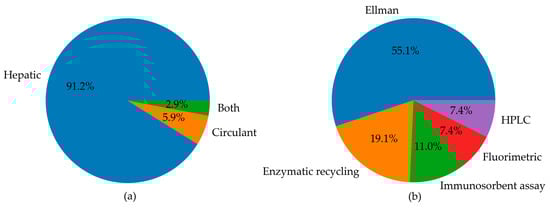 GSH is mainly produced by the liver, which retains the unique ability to synthesise its precursor (i.e., Cys) and provide the principal reservoir for releasing GSH into circulation [,]. Besides its role as a GSH precursor, Cys is central to sulphur metabolism, involving Hcy and serine in the synthesis of GSH. Furthermore, GSH serves as a steady source of Cys through the extracellular degradation to form CysGly via the γ-glutamyl cycle, thus playing a pivotal role in regulating the cellular stress response when Cys levels are low []. The total extracellular concentration of free Cys is typically maintained at values ranging from 200 to 300 μM [], while a healthy Hcy level is generally below 14 μM []. A large amount of the literature highlighted that different methods, such as fluorescence or electrochemical detection, may be used to detect Cys, CysGly, and Hcy. HPLC remains the most sensitive approach for simultaneously measuring single thiols, at least in body fluids [].