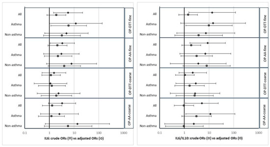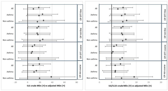 3.2. Adjusted Associations Between PM-OP, IL-6 and the IL-6/IL-10 Ratio