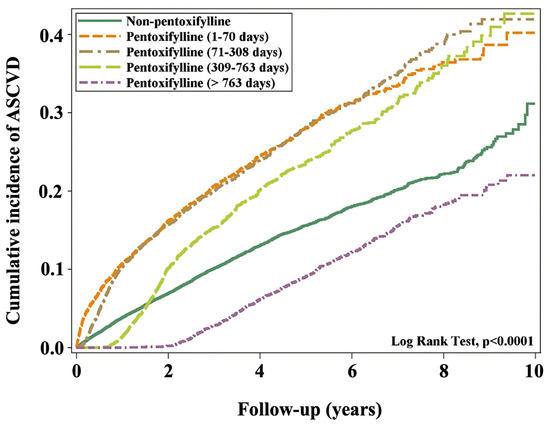 Chicago/Turabian StyleWang, Jie-Sian, Ping-Hsuan Tsai, Kuo-Feng Tseng, Cheng-Li Lin, Fang-Yu Chen, Chiz-Tzung Chang, and Ming-Yi Shen. 2024. "Long-Term Pentoxifylline Therapy Is Associated with a Reduced Risk of Atherosclerotic Cardiovascular Disease by Inhibiting Oxidative Stress and Cell Apoptosis in Diabetic Kidney Disease Patients" Antioxidants 13, no. 12: 1471. https://doi.org/10.3390/antiox13121471