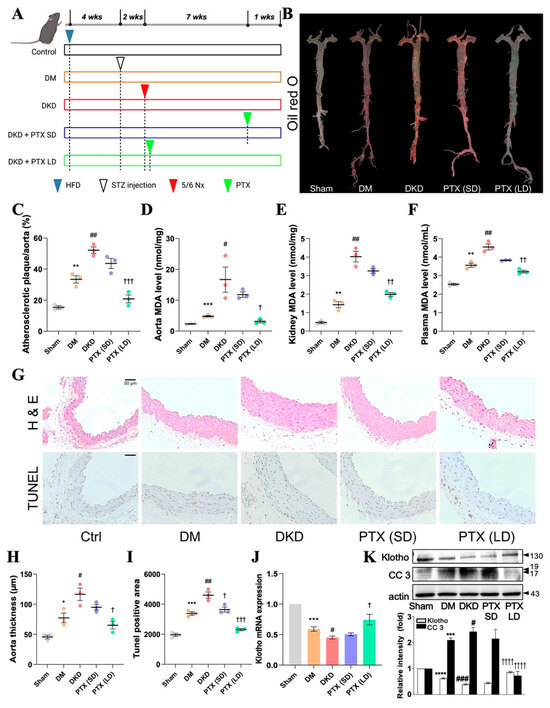 3.5. PTX Inhibits Atherosclerosis in a DKD Mouse Model