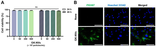 3.2. Cytotoxicity and Cellular Uptake of GK-NVs
