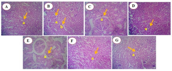 - Langeswaran, K.; Selvaraj, J.; Ponnulakshmi, R.; Mathaiyan, M.; Vijayaprakash, S. Protective effect of Kaempferol on biochemical and histopathological changes in mercuric chloride induced nephrotoxicity in experimental rats. J. Biol. Act. Prod. Nat. 2018, 8, 125–136. [Google Scholar] [CrossRef]