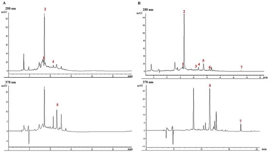 3.5. Determination of Phenolic Profile—Identification and Quantification
