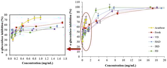 - Zhang, L.; Li, J.; Hogan, S.; Chung, H.; Welbaum, G.E.; Zhou, K. Inhibitory effect of raspberries on starch digestive enzyme and their antioxidant properties and phenolic composition. Food Chem. 2010, 119, 592–599. [Google Scholar] [CrossRef]