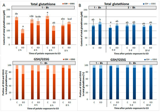 2.5. Determination of Glutathione Content in Potato Plants Exposed to French Marigold Essential Oil
