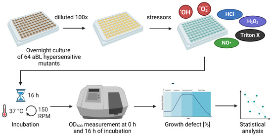 3.1. Growth Defects of aBL Hypersensitive Mutants Exposed to a Single Stressor