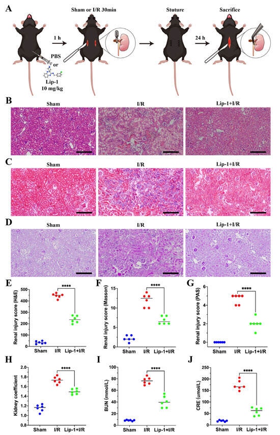 3.1. Lip-1 Alleviated I/R-Induced AKI