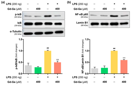 3.6. Effects of Gd-Ga on IκB Phosphorylation and NF-κB Translocation in LPS-Induced BV-2 Cells