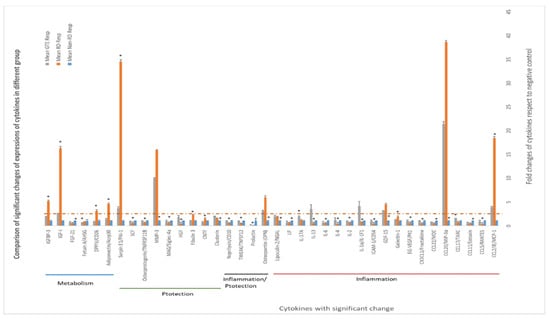 Cytokines were grouped based on their major physiological roles associated with inflammation, protection, and metabolic modulation.