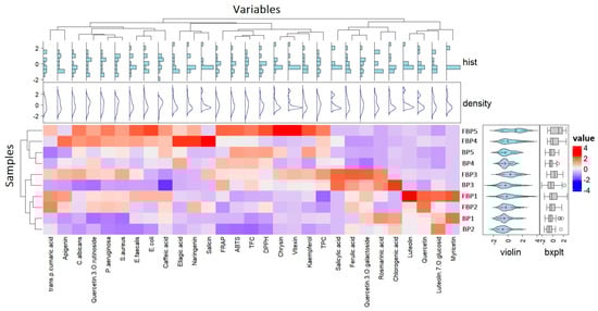 In order to achieve a successful fermentation process and ensure the growth of beneficial microorganisms that result in a high-quality fermented product, it is imperative to monitor pH and acidity during BP fermentation. The pH and acidity of the BP and FBP samples are visualized in Table 2.