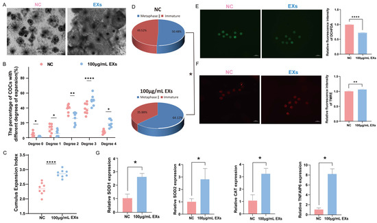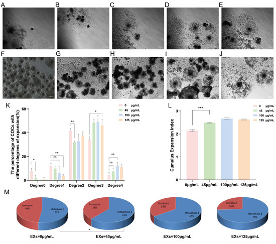 3.3. Effects of GC-EXs of Different Concentrations on Cumulus Expansion and Oocyte Maturation