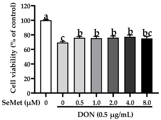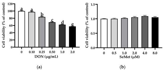 3.2. Effect of SeMet on Cell Viability of IPEC-J2 Cells under DON Exposure