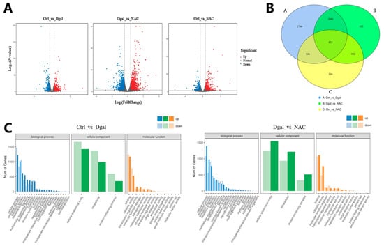 Total RNA, extracted from the three groups of cells (control, 1.5 mg/mL D-gal-treated, and 0.5 mg/mL NAC-treated groups), were sent to Biomarker Technologies Co., Ltd. (Beijing, China) for constructing cDNA libraries, sequencing as well as processing the resulting transcriptome data. For each experimental condition, there were three independent biological replicates.