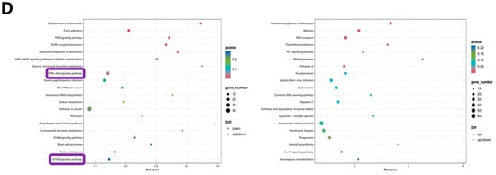 Functional enrichment and pathway analyses were then performed on differentially expressed genes (DEGs) with the R Bioconductor’s clusterProfiler package to explore Gene Ontology (GO) terms and Kyoto Encyclopedia of Genes and Genomes (KEGG) pathways. In this case, the DESeq2 version 1.30.1 was used to identify significant variations in gene expression between the three experimental groups, with the criteria to establish a gene as a DEG being a log2(FoldChange) of ≥1 and a p-value of <0.05.