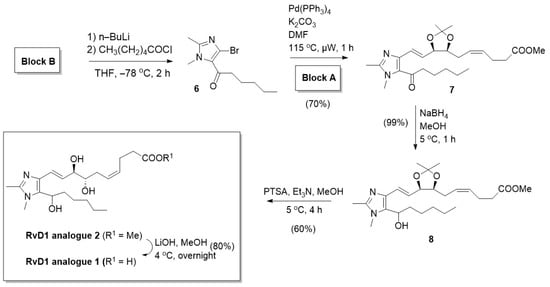2.2.3. RvD1 Analogues 1 and 2 Syntheses