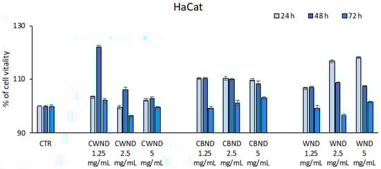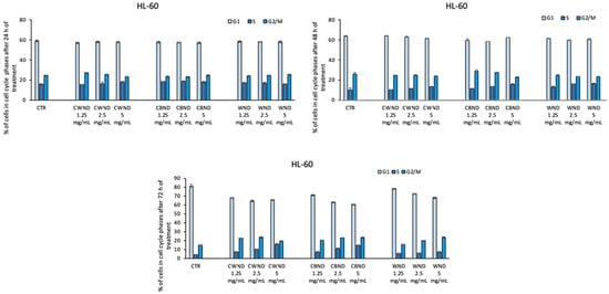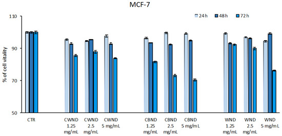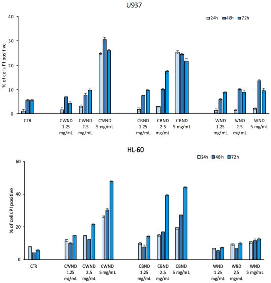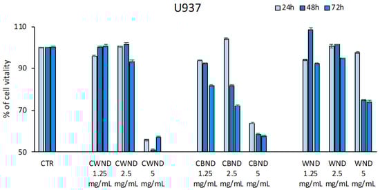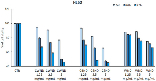 3.2.1. Biological Effect of CWND, CBND, and WND in Hematological and Solid Cancer Cells
