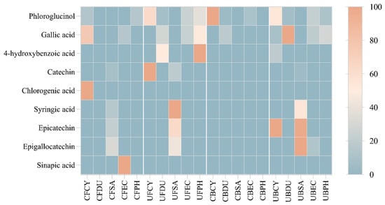 3.7. Heatmap Analysis of Phenolic Compounds