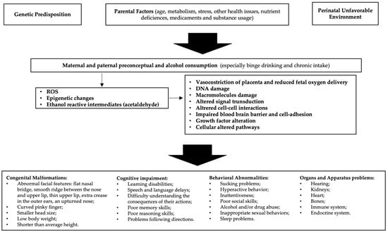 The FASD risk is likely increased in children who are genetically and environmentally predisposed, especially in the case of enhanced pathways for ROS formation and/or deficient pathways for ROS detoxification or DNA repair [69].