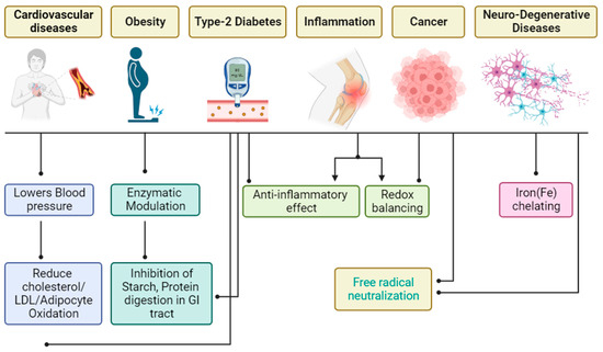 Epidemiological studies have shown that consumption of dietary polyphenols can reduce the risk of chronic diseases [10]. Phyto-antioxidants are the main contributors to the total antioxidant activity of fruits and vegetables [144]. They protect the cells from oxidative damage and increase the plasma antioxidant capacity [145].